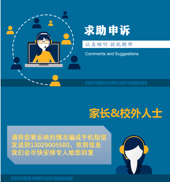 為進一步暢通聯系,及時解決師生、家長的合理訴求,傾聽意見建議,更好地保障校園封閉管理期間教職工、在校大學生的學習和生活,學校在每天查看校長郵箱,關注學生訴求的基礎上,設立了專門的申訴求助電話,指定專人負責搜集教職工、學生及家長們的訴求,解決好在校師生員工遇到的困難。