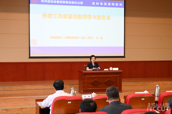 省委保密委員會副主任、省委保密委員會辦公室主任、省國家保密局局長、學校優秀校友趙楠,以“保密工作面臨的新形勢與新任務”為題,運用鮮活而生動的事例,為全體參訓人員講授了一堂震撼人心的保密專題報告。